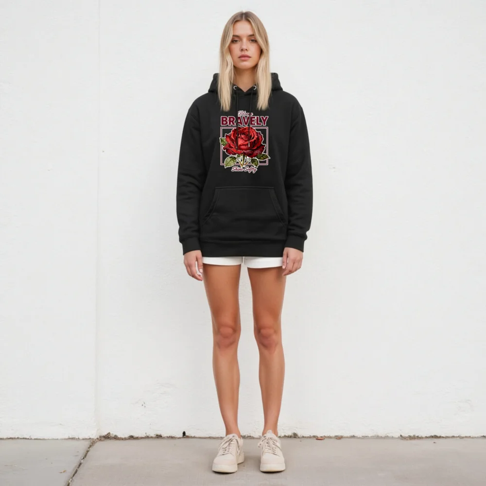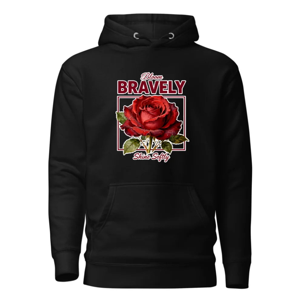 Unisex Premium Hoodie with ‘Bloom Bravely’ Rose Graphic
