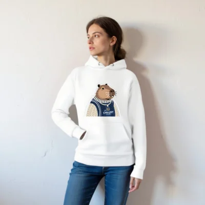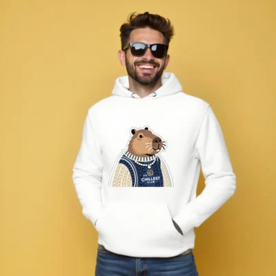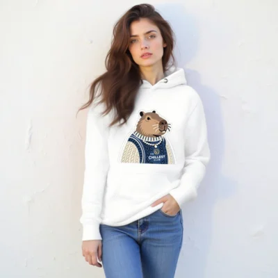 This unisex premium pullover hoodie features a charming capybara in a cozy navy and cream cable-knit sweater, proudly displaying ‘The Chillest Club’ logo. Crafted for comfort with soft cotton blend fabric, it’s perfect for casual wear or as a fun gift. The playful design combines relaxed style with a humorous, laid-back vibe—ideal for anyone who embraces chill energy. Machine washable, durable, and true to size.