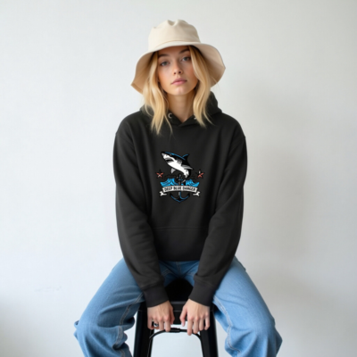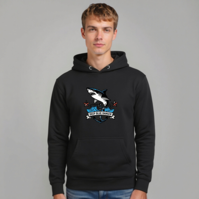 This unisex premium pullover hoodie features a bold ‘Deep Blue Danger’ shark and anchor graphic with nautical waves and stars. Crafted for comfort and style, it’s designed to fit all genders and sizes. The high-quality fabric ensures durability and softness. Ideal for ocean lovers and adventure seekers who appreciate bold, thematic apparel. Perfect for casual wear or as a statement piece.