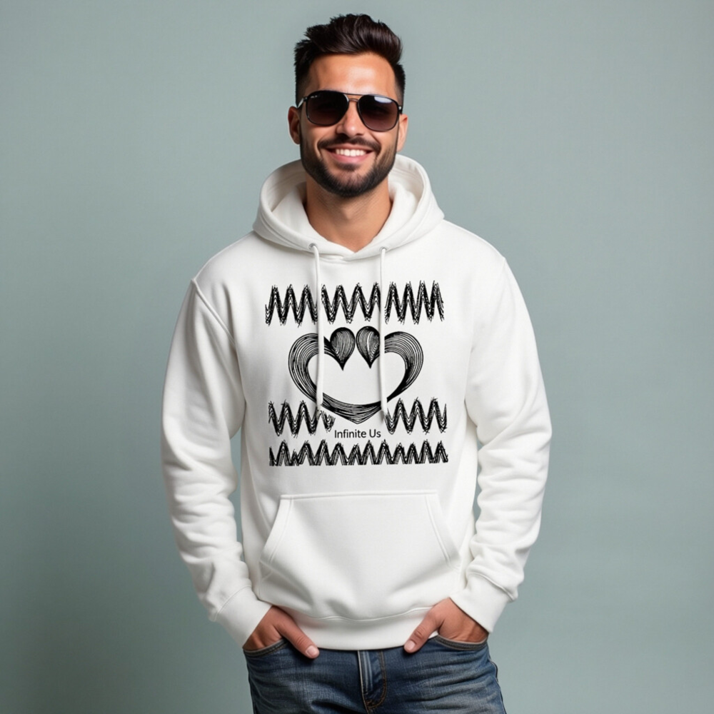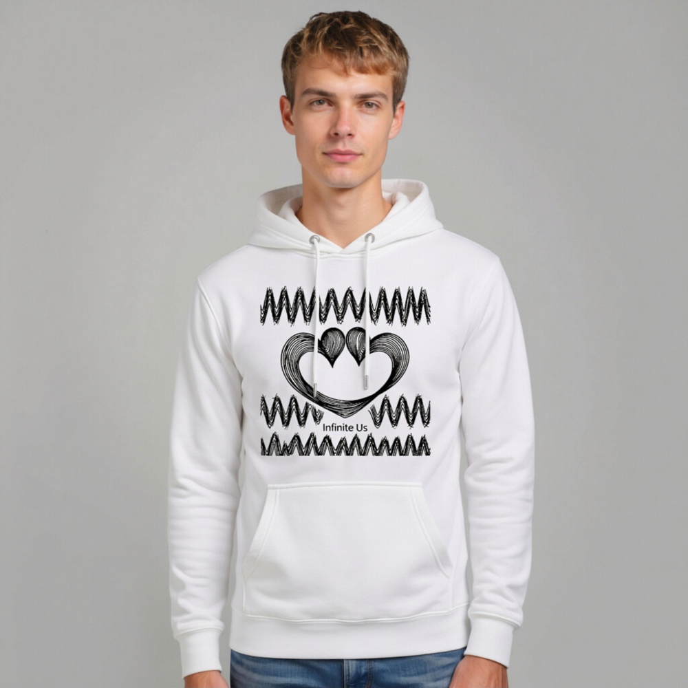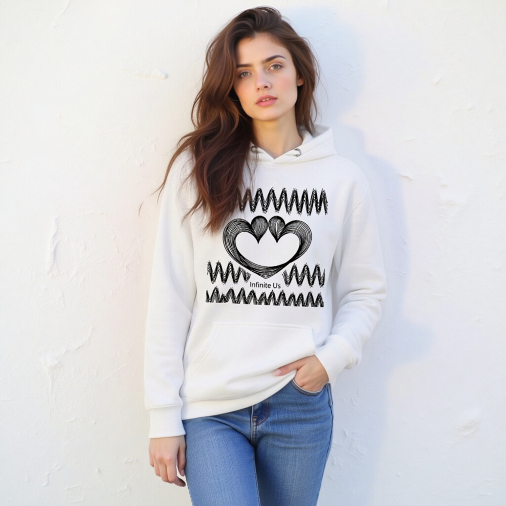 Show your love with this unisex premium pullover hoodie featuring the unique ‘Infinite Us’ heart design—two interlocking hearts with flowing wave patterns. Made for comfort and style, it’s a versatile everyday essential for all genders. The soft, high-quality fabric ensures durability and gentle wear. Perfect for casual outings or as a meaningful gift. Designed to fit true to size with relaxed silhouette.