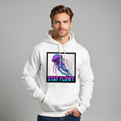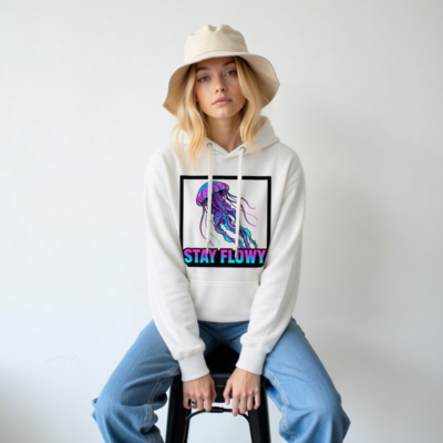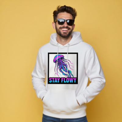 Wear the ‘Stay Flowy’ vibe with this unisex premium pullover hoodie featuring a vibrant neon jellyfish design. Soft, comfortable, and stylish—ideal for everyday wear. The bold graphic and gradient text make it a standout piece for those who embrace fluidity and self-expression. Designed for all genders, this high-quality hoodie delivers durability and everyday comfort.