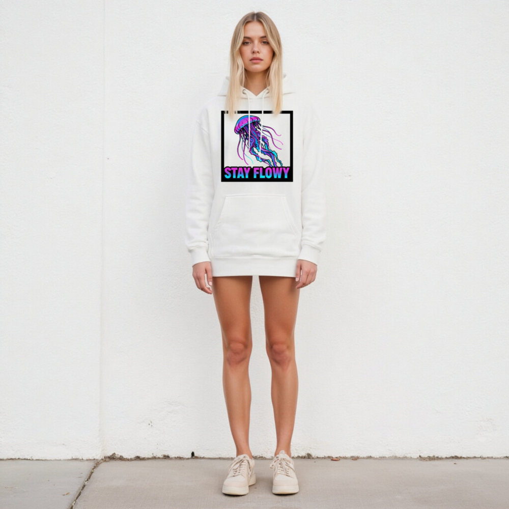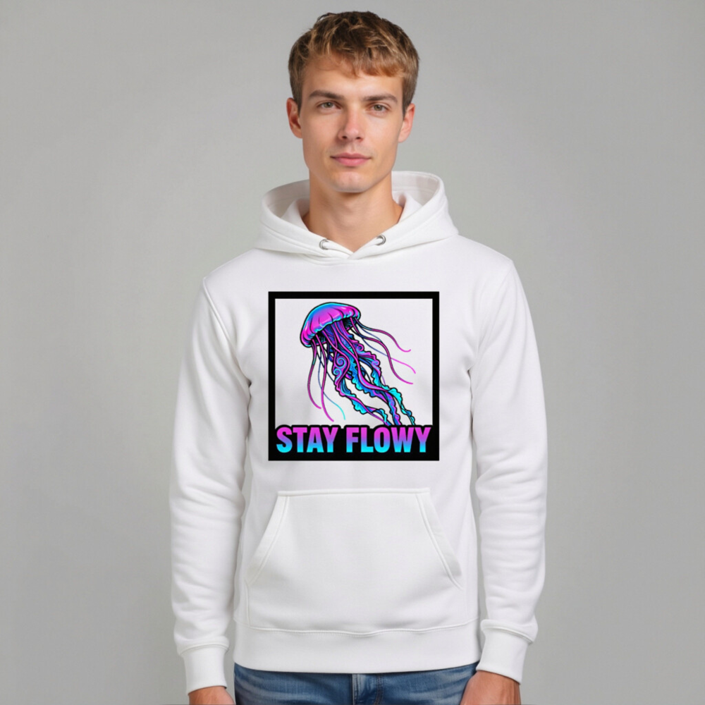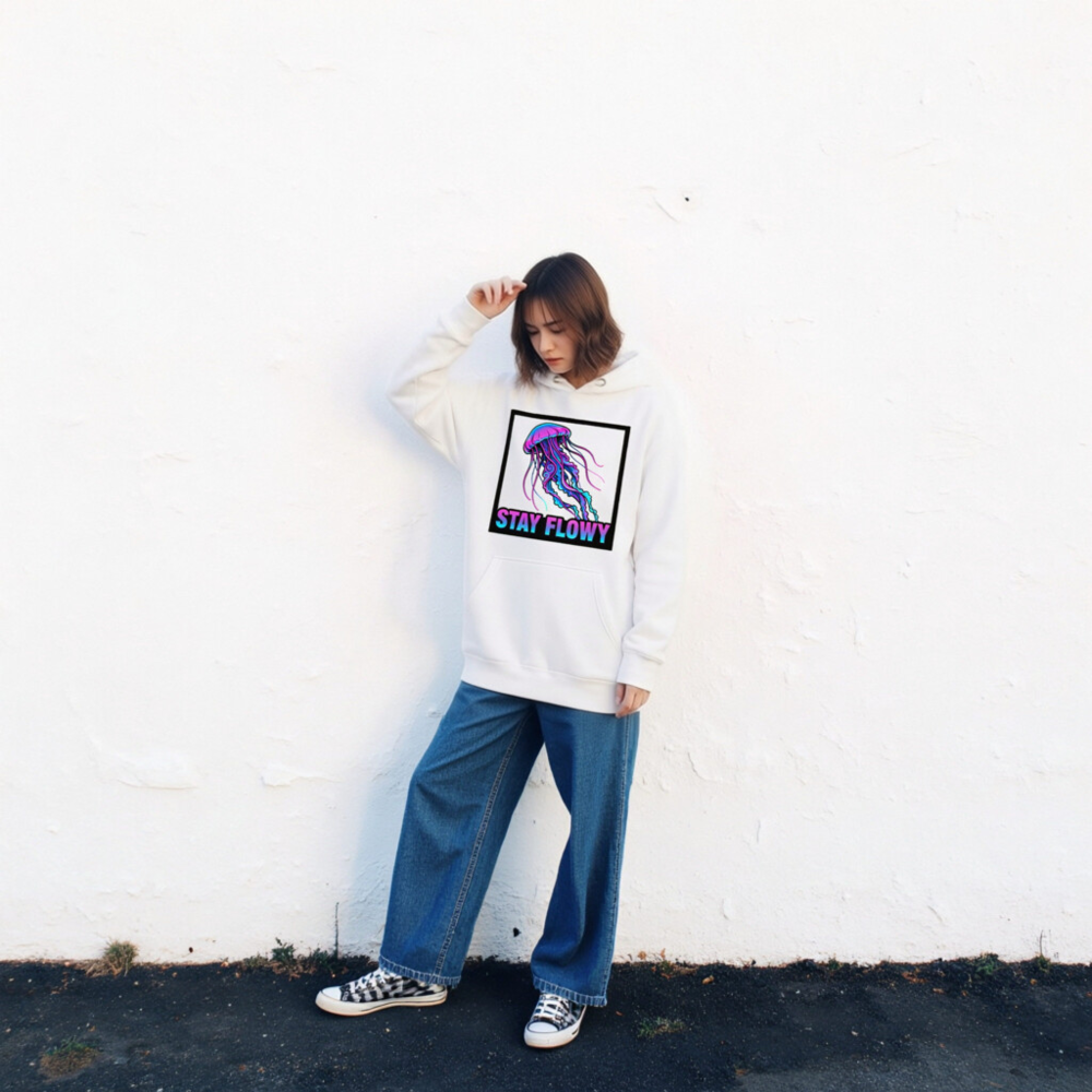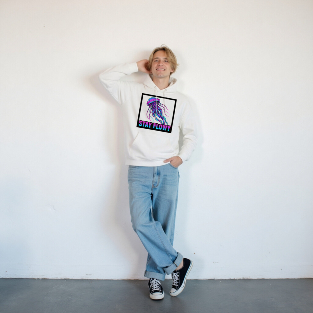 Wear the ‘Stay Flowy’ vibe with this unisex premium pullover hoodie featuring a vibrant neon jellyfish design. Soft, comfortable, and stylish—ideal for everyday wear. The bold graphic and gradient text make it a standout piece for those who embrace fluidity and self-expression. Designed for all genders, this high-quality hoodie delivers durability and everyday comfort.