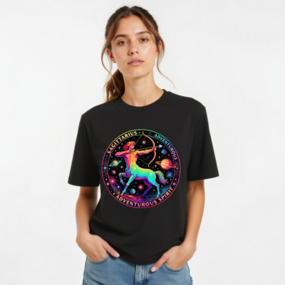 Unisex Sagittarius Astrology T-Shirt – Rainbow Archer, Adventurous Spirit