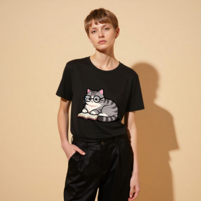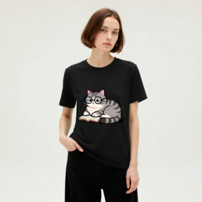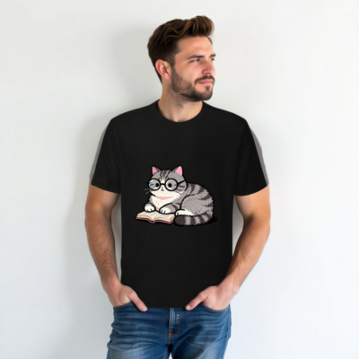 This unisex staple t-shirt features a charming cartoon gray tabby cat wearing round glasses, peacefully reading an open book. Soft, comfortable, and versatile for everyday wear—perfect for book lovers and cat enthusiasts. Classic fit, high-quality cotton blend, machine washable. Ideal gift for students, readers, or anyone who enjoys whimsical, cozy designs.