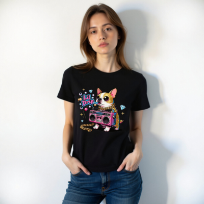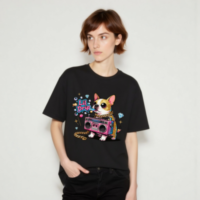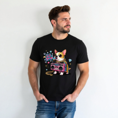 Show off your street style with this unisex staple t-shirt featuring a vibrant ‘Lil Drip’ chihuahua graphic—complete with pink boombox, gold chain, and sparkling diamonds. Designed for comfort and bold expression, it’s perfect for everyday wear. Premium cotton blend, classic fit, versatile for all genders. Ideal for fans of urban pet fashion and retro hip-hop vibes.