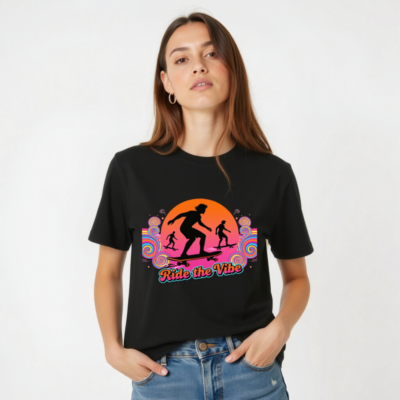 Unisex Staple T-Shirt – Ride the Vibe Skateboard Graphic Tee, Black