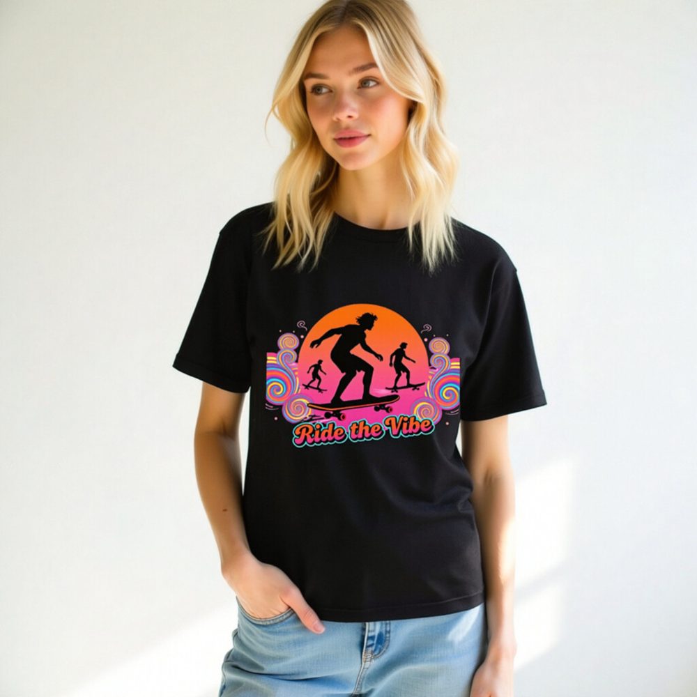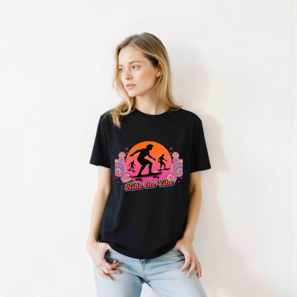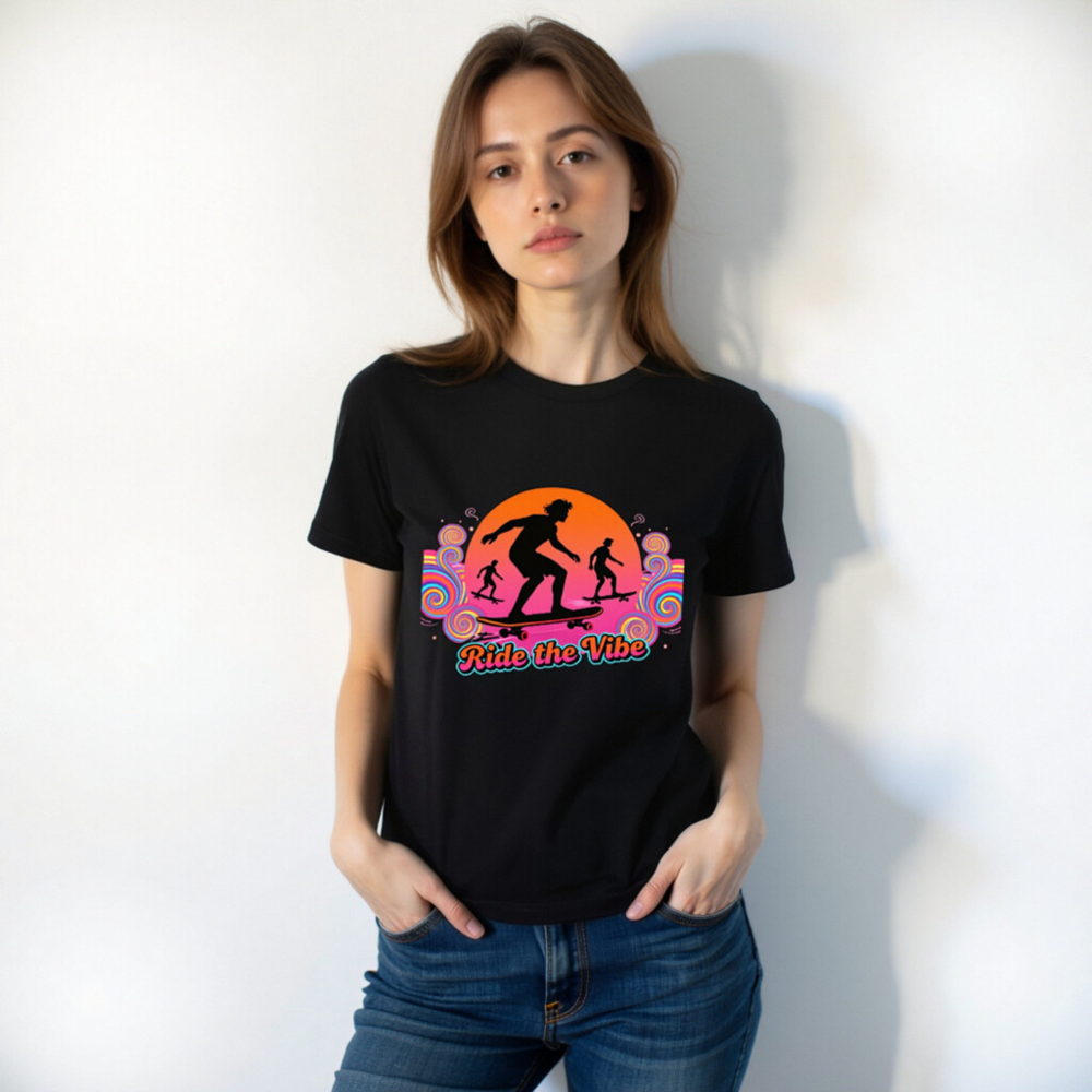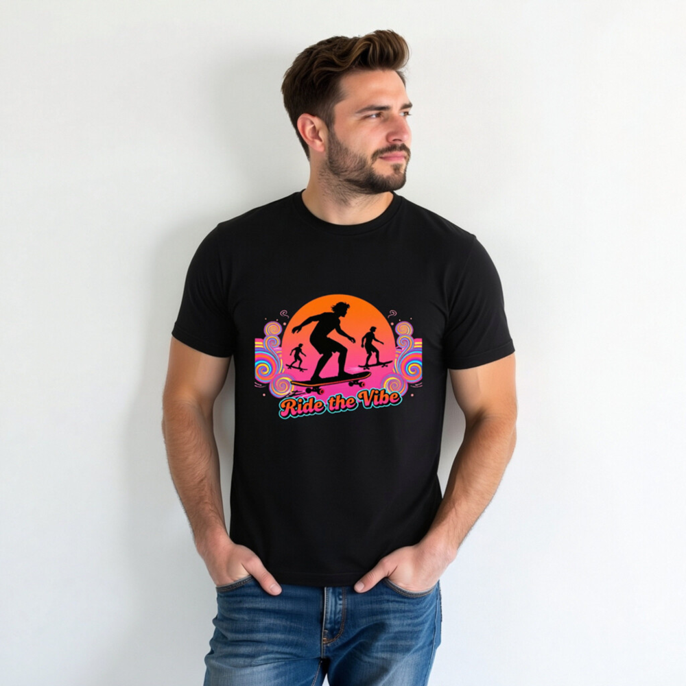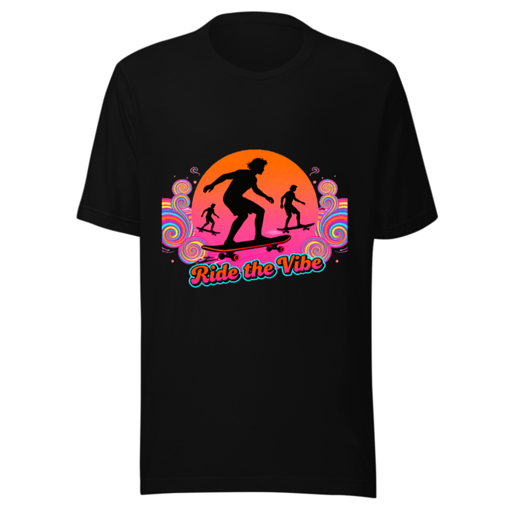 Unisex Staple T-Shirt – Ride the Vibe Skateboard Graphic Tee, Black