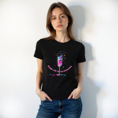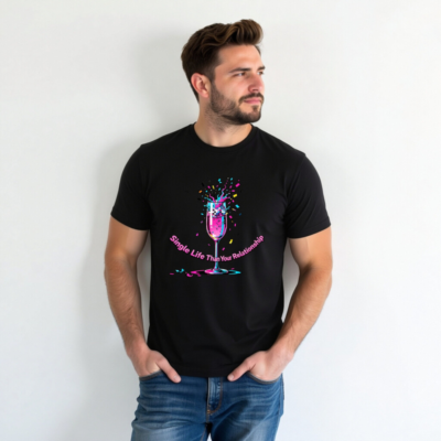 Celebrate independence with this unisex staple t-shirt featuring a bold, colorful champagne flute design and the playful slogan ‘Single Life Than Your Relationship’. Made for everyday comfort, this versatile tee combines fun graphics with a confident message. Perfect for solo celebrations or self-love days. Machine washable, soft cotton blend — no extra certifications claimed.