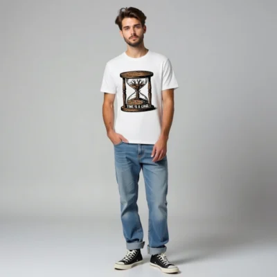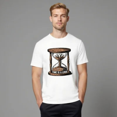 This unisex staple t-shirt features a striking hourglass design with a barren tree and skeletal remains, symbolizing ‘Time Is a Cage’—a powerful visual statement. Crafted for comfort and everyday wear, it pairs effortlessly with casual outfits. The bold graphic is printed with high-quality ink for durability. Ideal for those who appreciate dark, philosophical art and minimalist fashion. Machine washable, true to size, and made from soft cotton blend.