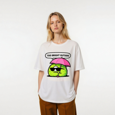 Unisex T-Shirt: Bright Outside? Cool Fuzzy Character with Pink Umbrella & Sunglasses