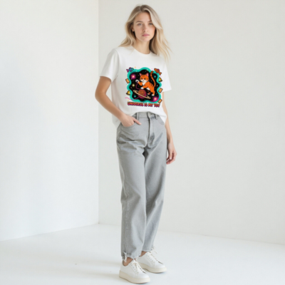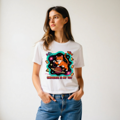Unisex T-Shirt – Universe Is My Toy Cat Space Design, Soft Staple Tee