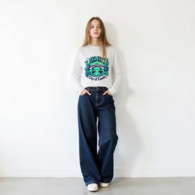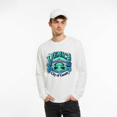 Showcase Venice’s iconic charm with this unisex long sleeve tee featuring the Rialto Bridge, gondolas, and swirling canals. Perfect for travelers and culture lovers, this comfortable cotton blend shirt captures the essence of Venice—’City of Canals’—in vibrant blue-green tones. Ideal for casual wear, gifts, or travel souvenirs. Soft, breathable, and true to size.