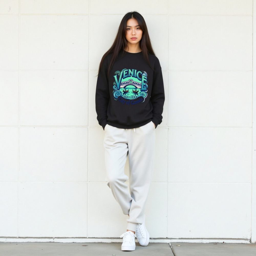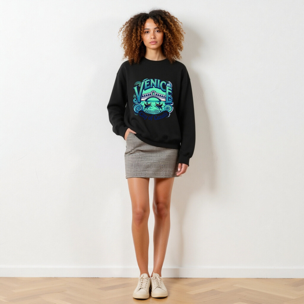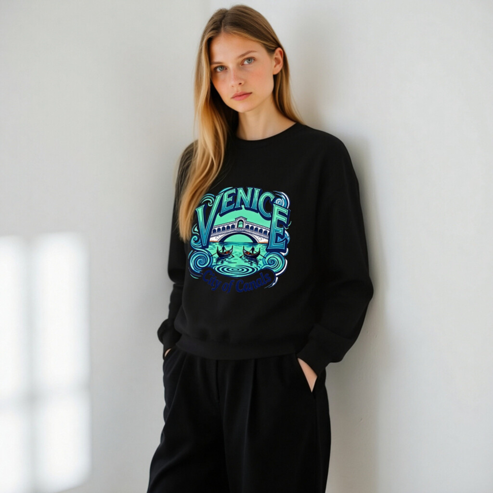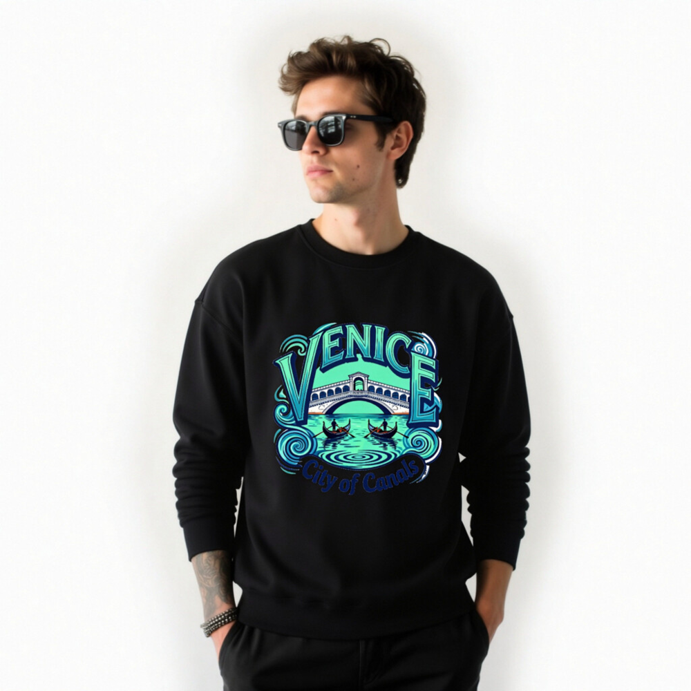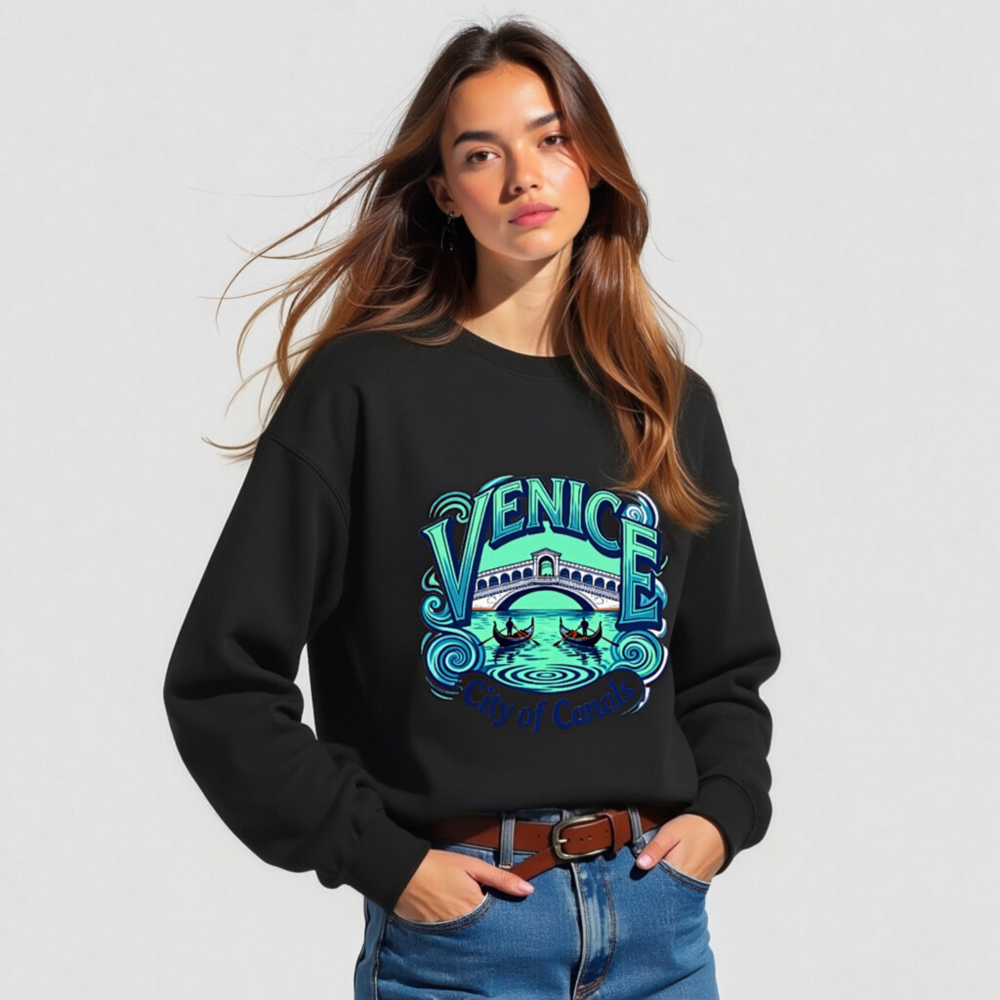 Showcase Venice’s magic with this unisex crew neck sweatshirt featuring a vibrant, artistic design of the Rialto Bridge, gondolas, and swirling canals. Perfect for travelers, art lovers, or anyone who adores Italy’s iconic water city. Soft, comfortable, and stylish—ideal as a souvenir or everyday wear. ‘City of Canals’ tagline adds charm. Great for gifts or self-indulgence!