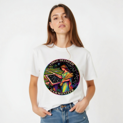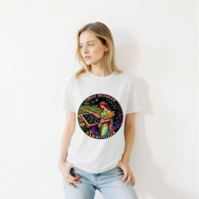 Celebrate the Virgo zodiac with this vibrant, unisex organic cotton t-shirt. Featuring a detailed illustration of the Virgo goddess—holding wheat and charting constellations—this design blends astrology, classical art, and cosmic harmony. Soft, eco-friendly fabric for everyday comfort. Perfect for astrology lovers and celestial enthusiasts seeking meaningful, stylish apparel.