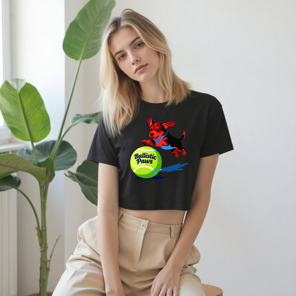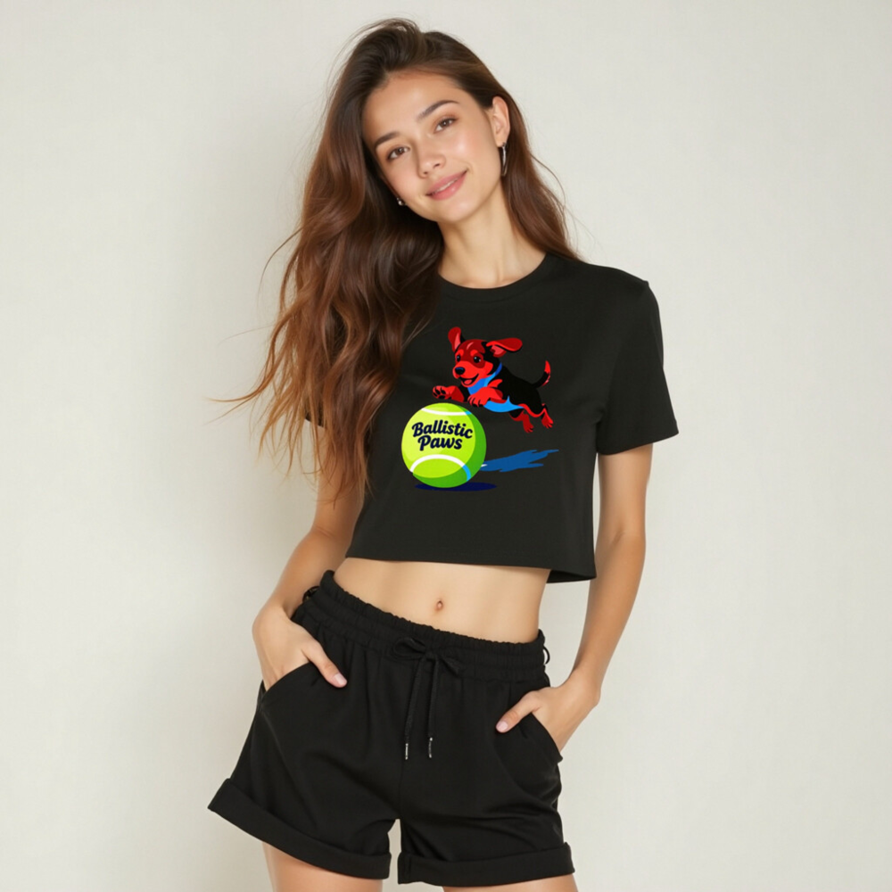 Women’s Ballistic Paws Crop Top – Fun Dog Tennis Design, Short Sleeve