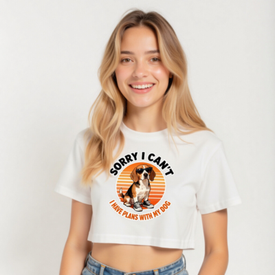 Women’s Beagle Crop Top – ‘Sorry I Can’t, I Have Plans With My Dog’ Vintage Tee