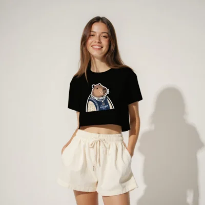 This crop top is made of 100% combed cotton, which makes the shirt extremely soft and more durable than regular cotton shirts. The relaxed fit and dropped shoulders ensure comfortable wear, while the cropped length makes it perfect for spring and summer.
