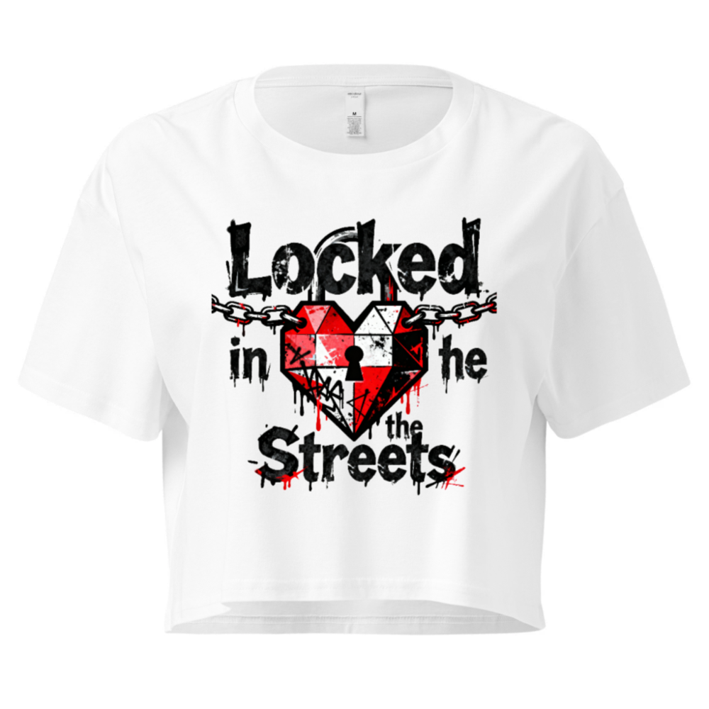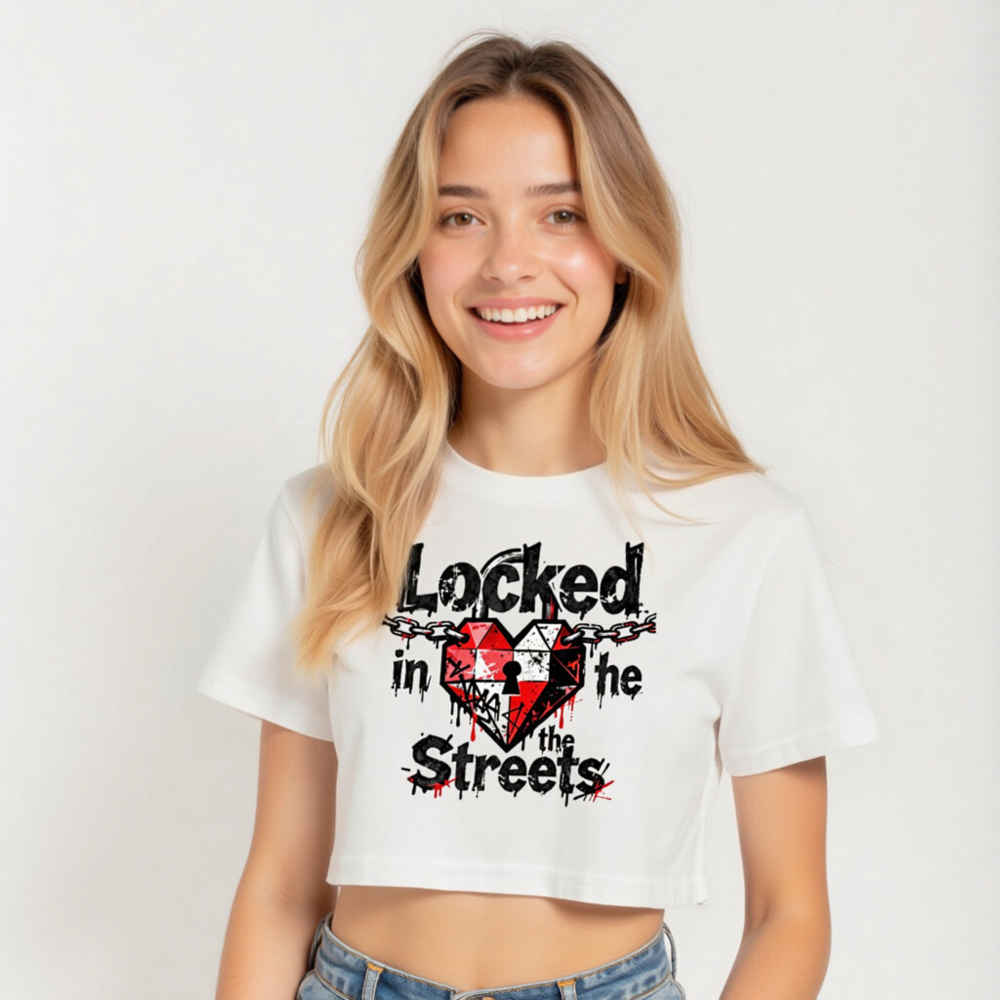 Women’s Crop Top – ‘Locked in the Streets’ Heart & Chain Design, Short Sleeve, Casual Streetwear