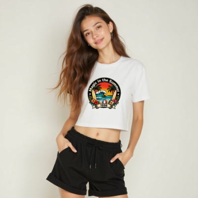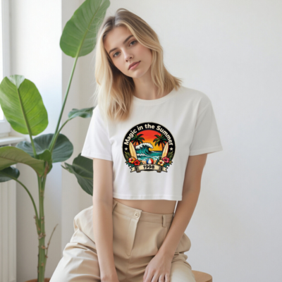Women’s Crop Top Magic in the Summer 1998 Surf Beach Design