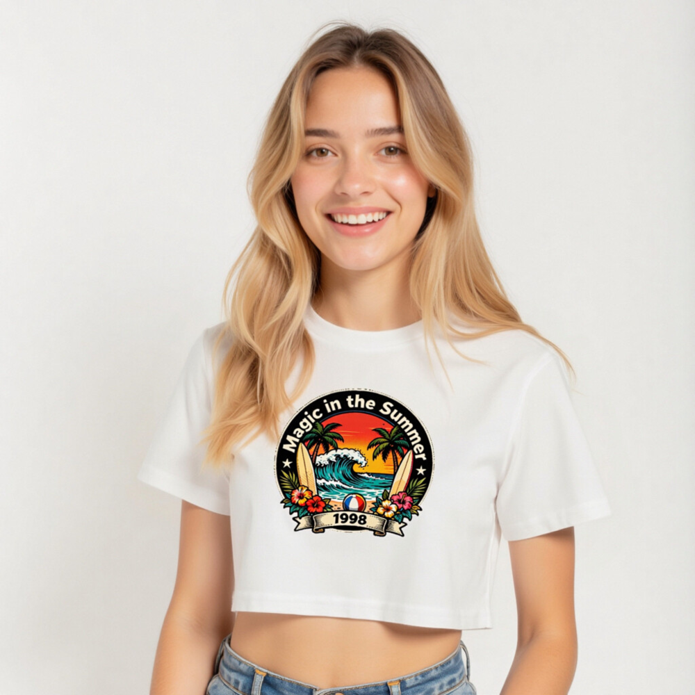 Women’s Crop Top Magic in the Summer 1998 Surf Beach Design
