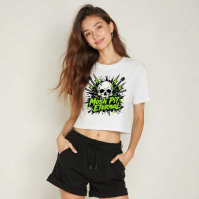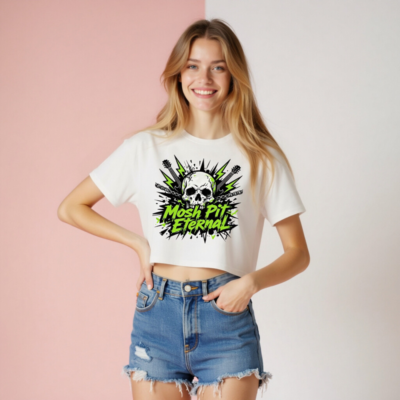 Women’s Crop Top – Mosh Pit Eternal Skull Guitar Graphic Tee