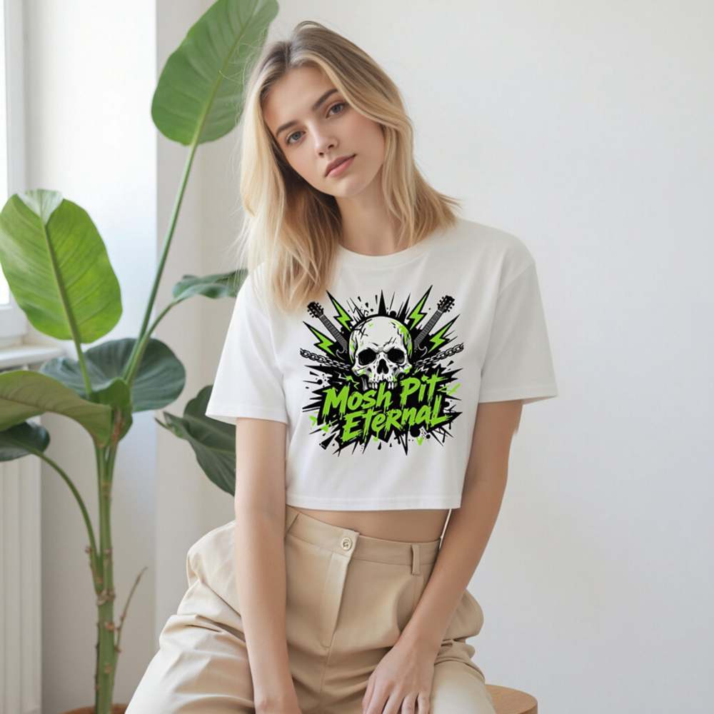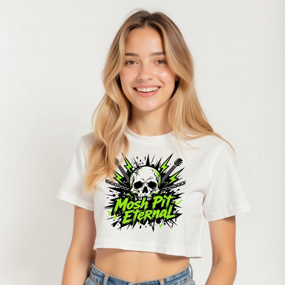 Women’s Crop Top – Mosh Pit Eternal Skull Guitar Graphic Tee