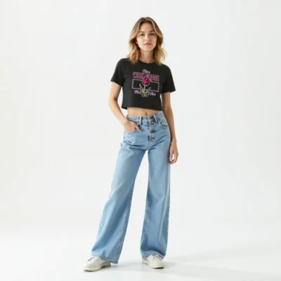 This crop top is made of 100% combed cotton, which makes the shirt extremely soft and more durable than regular cotton shirts. The relaxed fit and dropped shoulders ensure comfortable wear, while the cropped length makes it perfect for spring and summer.