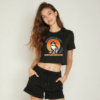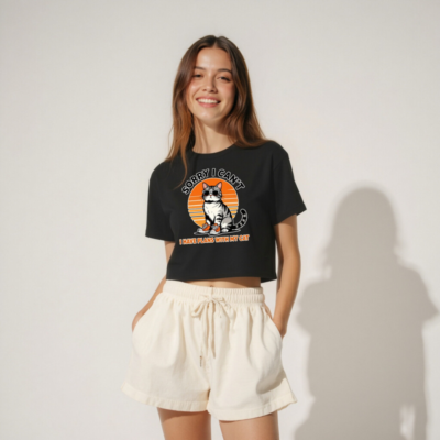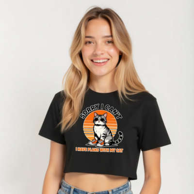 Women’s Crop Top – ‘Sorry I Can’t, I Have Plans With My Cat’ Vintage Cat Graphic Tee