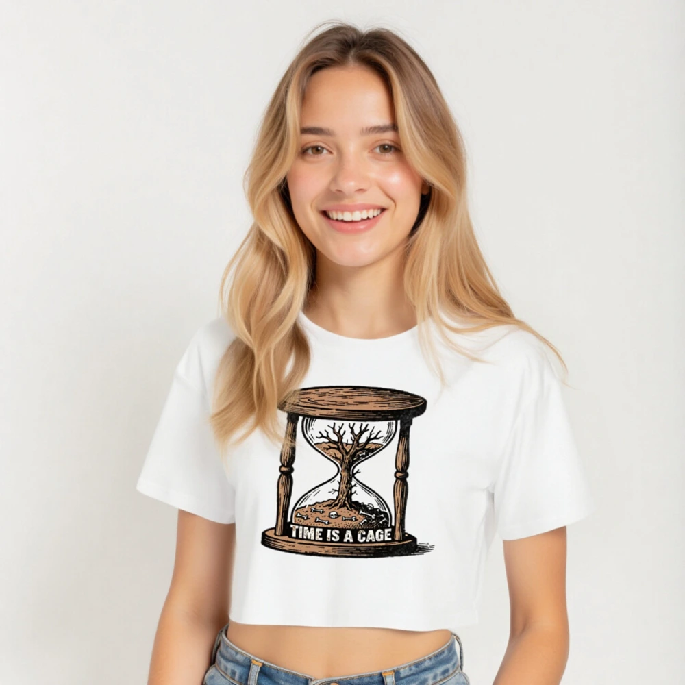 Women’s Crop Top – Time Is a Cage Hourglass Design, Short Sleeve, Comfort Fit
