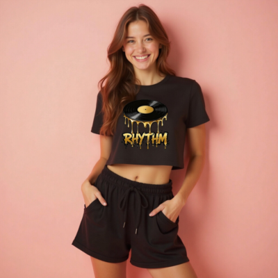 Women’s Crop Top with Vinyl Record & Gold Drip RHYTHM Design
