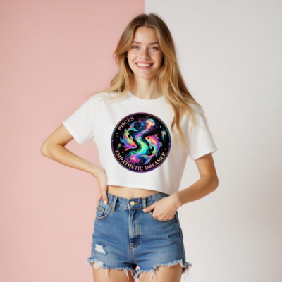 Women’s Pisces Crop Top – Empathetic Dreamer Fish & Jellyfish Astrology Tee